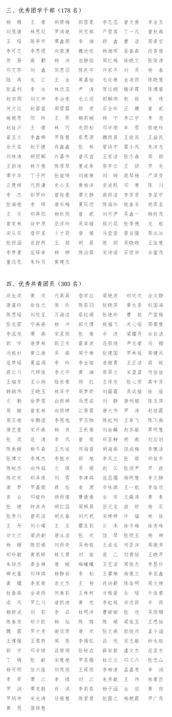 段生虎、黃欣等303名同學(xué)“優(yōu)秀共青團(tuán)員”榮譽(yù)稱號(hào);
