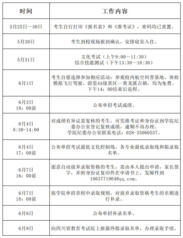 單招考試日程安排