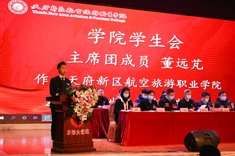 近日,天府新區(qū)航空旅游職業(yè)學(xué)院第一次學(xué)生代表大會在多彩大講堂隆重召開。學(xué)院院長劉存緒,學(xué)院黨委書記、督導(dǎo)專員王元瓏等院級領(lǐng)導(dǎo)出席。成都地區(qū)部分兄弟院校團(tuán)委負(fù)責(zé)人,我院校團(tuán)委主席團(tuán)、干部以及近300名學(xué)生代表參加了會議。開幕式由我院團(tuán)委副書記李學(xué)洋主持。