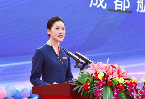 優(yōu)秀學(xué)生代表蔣梓桐,現(xiàn)就職于四川航空有限公司擔(dān)任客艙乘務(wù)員一職,代表全體就業(yè)學(xué)生向辛勤給予我們啟迪、授予我們智慧、教育我們正直、賦予我們關(guān)懷的領(lǐng)導(dǎo)老師們,表示最誠(chéng)摯的感謝!并祝愿天航的明天更加燦爛輝煌!祝愿領(lǐng)導(dǎo)、老師們身體健康,工作順利!祝愿親愛的學(xué)弟學(xué)妹們,學(xué)業(yè)有成!