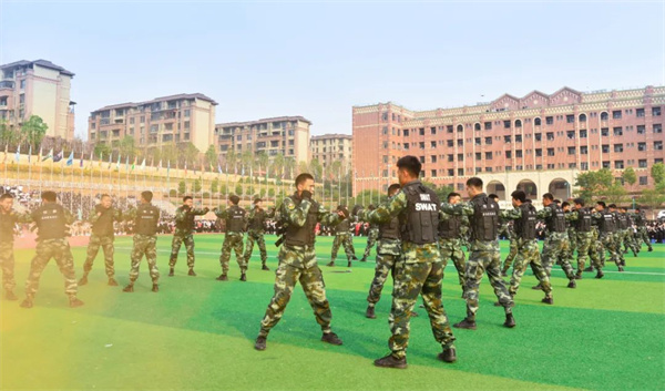 上午9時(shí)30分,軍體素質(zhì)匯報(bào)表演開始,隊(duì)列檢閱、分列式匯報(bào)一一展示。14個(gè)方隊(duì)邁著整齊的步伐、口號(hào)嘹亮、英姿颯爽地從主席臺(tái)走過,接受在場(chǎng)的領(lǐng)導(dǎo)、嘉賓和軍體素質(zhì)教官們檢閱。