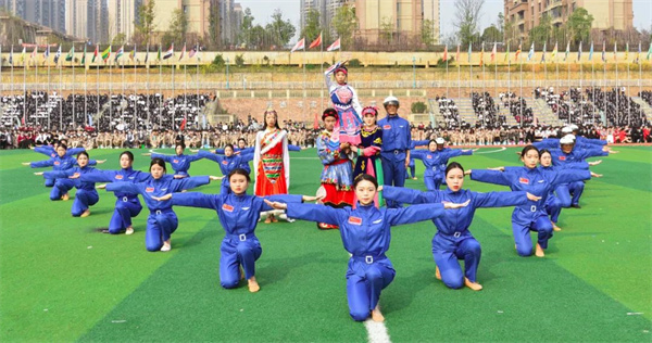 慶典儀式上,天航學(xué)子們的精彩節(jié)目堪比大片。
