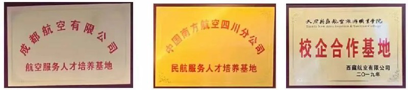 九元航空有限公司民航服務(wù)人才培養(yǎng)基地、多彩貴州航空有限公司航空服務(wù)人才培養(yǎng)基地、四川省機(jī)場集團(tuán)航空地面服務(wù)有限公司民航服務(wù)人才培養(yǎng)基地、成都航空有限公司航空服務(wù)人才培養(yǎng)基地、中國南方航空四川分公司民航服務(wù)人才培養(yǎng)基地、校企合作基地(西藏航空有限公司)等。