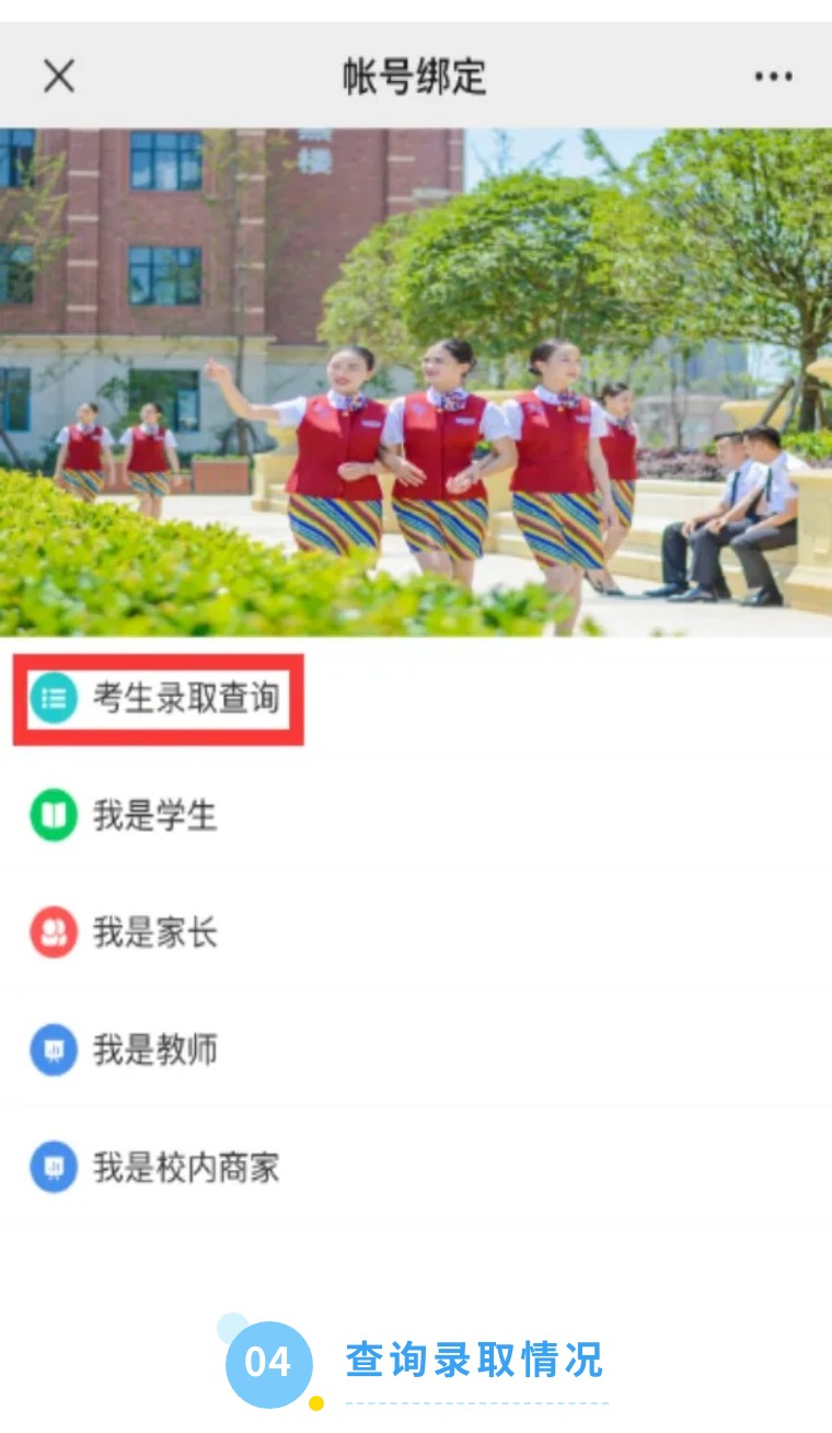 選擇“考生錄取查詢”,已綁定的考生可直接進入,無此步驟;