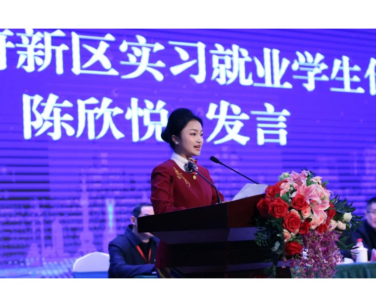 我校實(shí)習(xí)就業(yè)學(xué)生代表陳欣悅則講述了自己在學(xué)校的學(xué)習(xí)經(jīng)歷,以及對(duì)即將開(kāi)始的新區(qū)實(shí)習(xí)生活充滿著美好向往與期待。