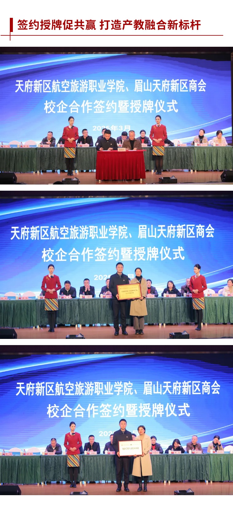 天府新區(qū)航空旅游職業(yè)學(xué)院與四川新達(dá)粘膠科技有限公司、四川五洲仁信科技有限公司、四川厚天科技股份有限公司簽署了校企合作協(xié)議,并進(jìn)行了“實(shí)習(xí)實(shí)踐基地”“人才培養(yǎng)基地”授牌儀式,校企雙方將圍繞訂單式培養(yǎng)、實(shí)訓(xùn)基地共建、師資共享、科研合作等展開(kāi)深度聯(lián)動(dòng)。
