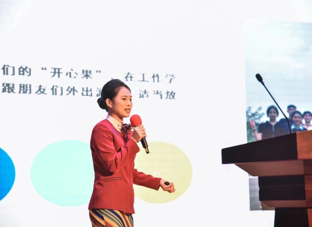 陳祺祺,2022級(jí)空中乘務(wù)2班,升本于:四川師范大學(xué)酒店管理專(zhuān)業(yè)。她在天航依托一支 “懂行業(yè)、會(huì)教學(xué)、善指導(dǎo)” 的師資團(tuán)隊(duì),得以在專(zhuān)業(yè)學(xué)習(xí)中少走彎路,快速夯實(shí)核心能力:從課堂上的理論吸收,到實(shí)訓(xùn)中的技能打磨,再到實(shí)踐中的成果轉(zhuǎn)化,每一步都有教師的精準(zhǔn)指導(dǎo)。同時(shí)她在課余時(shí)間積極考取證書(shū),大學(xué)英語(yǔ)新三級(jí)以及紅十字救護(hù)員證。同時(shí)積極參加校內(nèi)各類(lèi)比賽,演講和團(tuán)隊(duì)朗誦等等,以賽促學(xué)夯實(shí)了專(zhuān)業(yè)基礎(chǔ)。