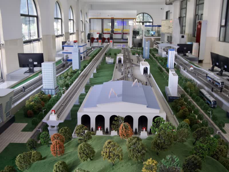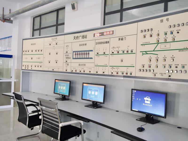 本實訓室是城市軌道交通相關專業(yè)的綜合性實踐場所,由城市軌道交通客室車門及屏蔽門模擬系統(tǒng)、AFC票務實訓系統(tǒng)、車控室IBP盤模擬系統(tǒng)、城市軌道交通行車模擬沙盤實訓系統(tǒng)四個子系統(tǒng)構成,整個實訓室由實物模型和仿真實訓系統(tǒng)兩大部分組成。本實訓系統(tǒng)能夠使學生充分認識地鐵車站的構成及分類,認識城市軌道交通線路與站場的分類,認識車站設備設施及操控系統(tǒng),認識列車車門及屏蔽門的結構組成等,并掌握行車組織系統(tǒng)軟件操作方法、具備故障應對與解決能力。軌道交通專業(yè)群學生在實訓室可以直觀感受到客運組織環(huán)境和票務管理工作、列車運行環(huán)境和行車調度組織工作,可模擬控制中心行車調度員、車站行車值班員、車輛段調度員等崗位進行各級列車運行指揮工作,提升學生的綜合行車能力。