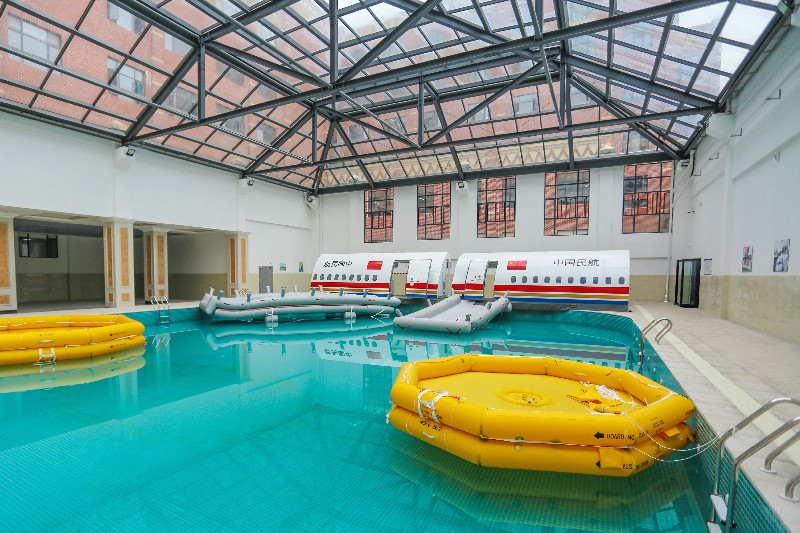 水上訓練場聚焦A320與A330機型專屬水上撤離實訓,構建全場景應急求生培訓體系。訓練核心涵蓋以下模塊:救生衣穿戴及注意事項,詳解快速取衣、正確穿戴步驟及充氣裝置操作,模擬艙內(nèi)緊急環(huán)境開展實操演練;救生筏使用教學,涵蓋筏體與機體分離、快速登筏、筏內(nèi)設備及使用技巧,強化多人協(xié)同登筏配合;水上求生訓練包含落水自救、同伴互助、惡劣環(huán)境應對及求救信號發(fā)送等關鍵技能;游泳技能訓練則針對性提升基礎泳姿熟練度、長距離漂浮能力與水中耐力,適配緊急撤離后的水域環(huán)境。全程模擬真實空難水上迫降場景,通過理論講解與實操演練結合,確保參訓人員熟練掌握各類應急技能,提升極端情況下的生存幾率。